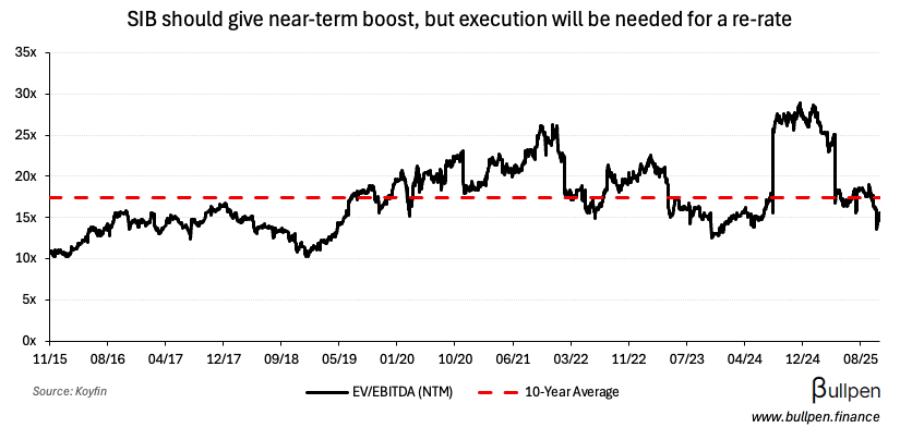 … but after that’s filled, attention turns back to execution. If shares don’t react to fundamental improvement, private equity might take a swing - given the growth → profitability transition is their sweet spot.