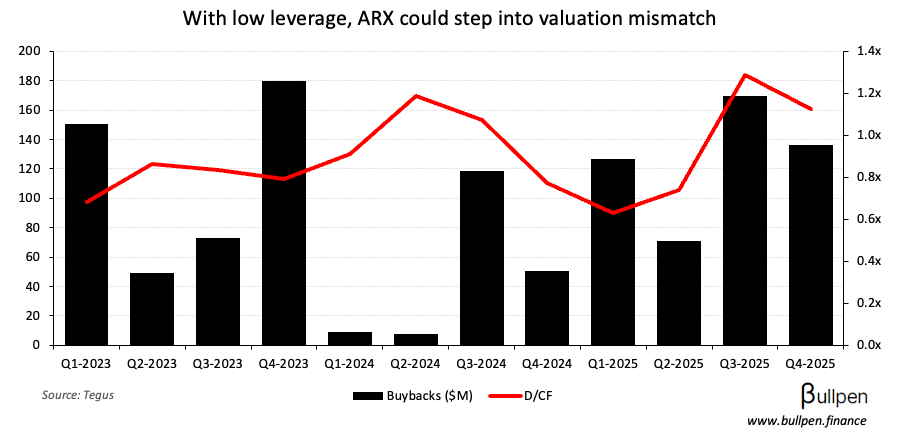 It’s unlikely the discount will open up too wide though, given ARX’s clean balance sheet and willingness to step into the market to buy back stock.