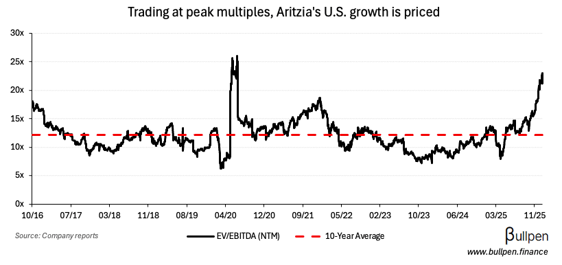 … but at this point, it’s tough to imagine that’s not priced. Trading at its peak multiple on forward EBITDA, it’s likely that future returns will be more a function of fundamentals than a re-rate.