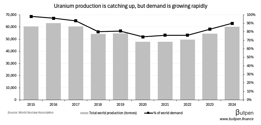 … and it also improves the fundamental case for uranium miners, who aren’t meeting current demand as is…