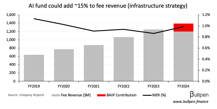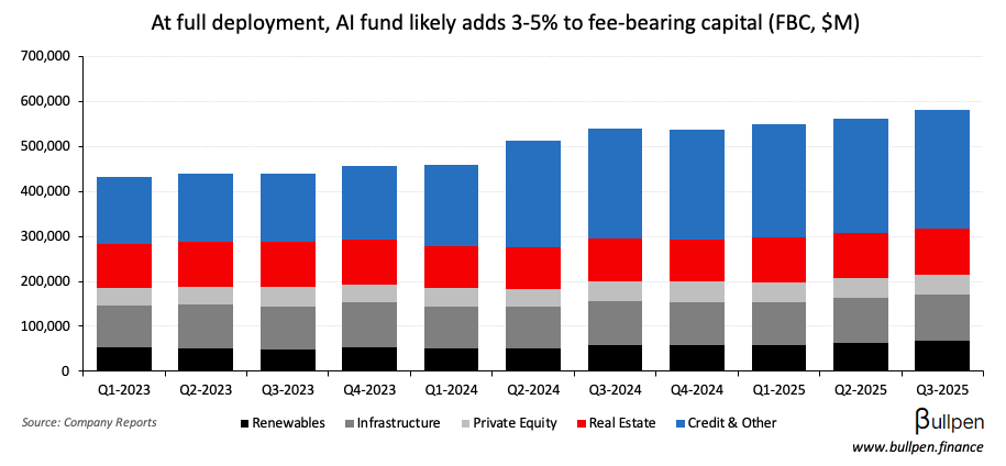 … you’re looking at a $190M bump to fee-based revenue once fully deployed, 15% of what the infra strategy currently generates (4% of total fee revenue). Not huge, but other Brookfield entities will likely get involved, BIP on the data side…