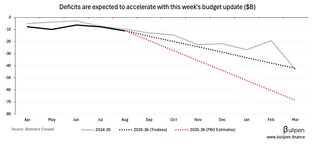 The budgetary deficit was $3.3B in August, expanding Y/Y on higher program expenses…