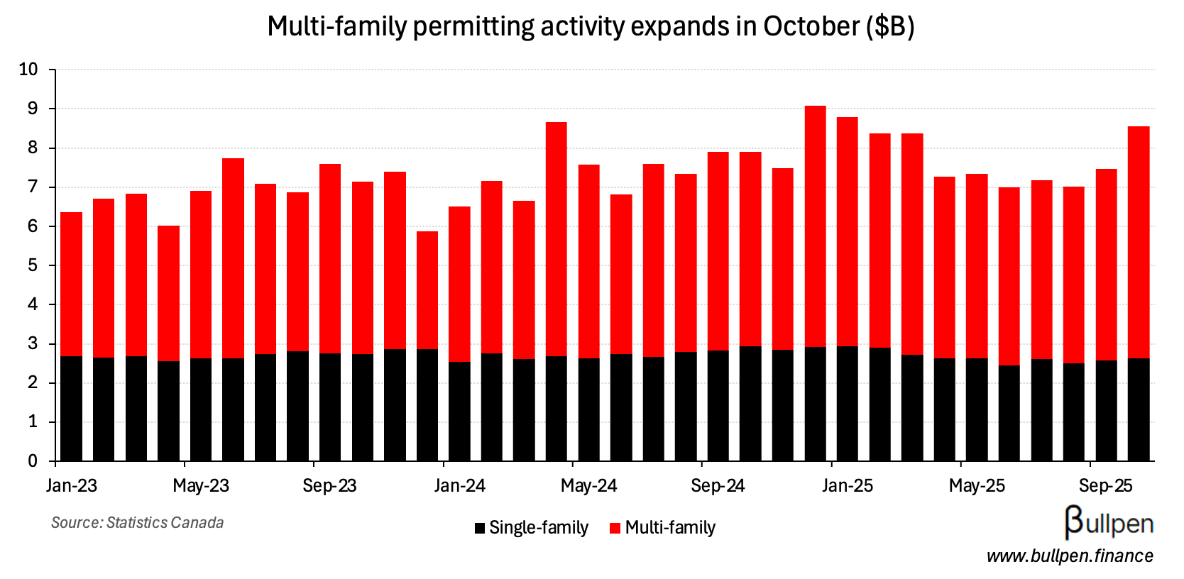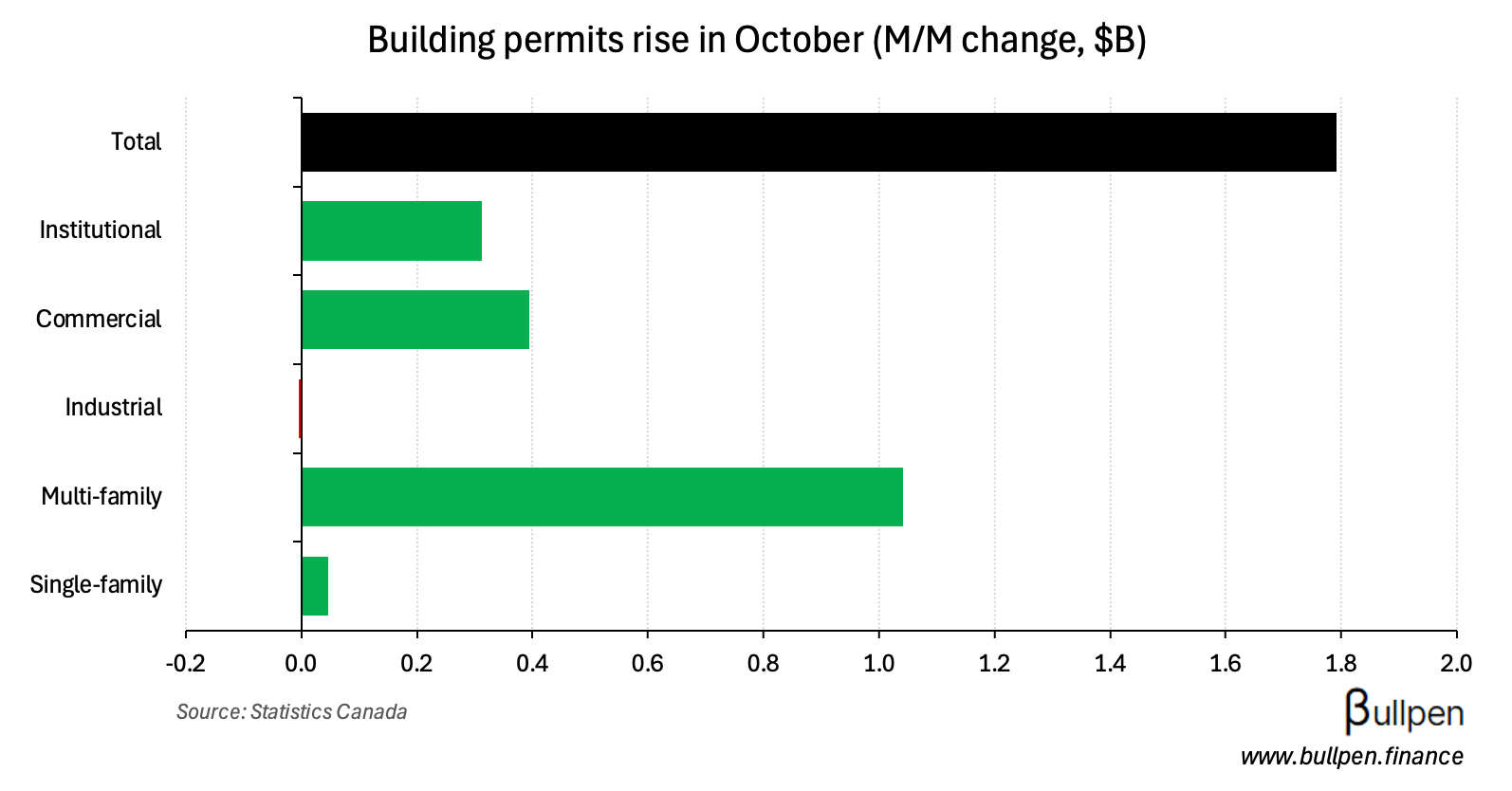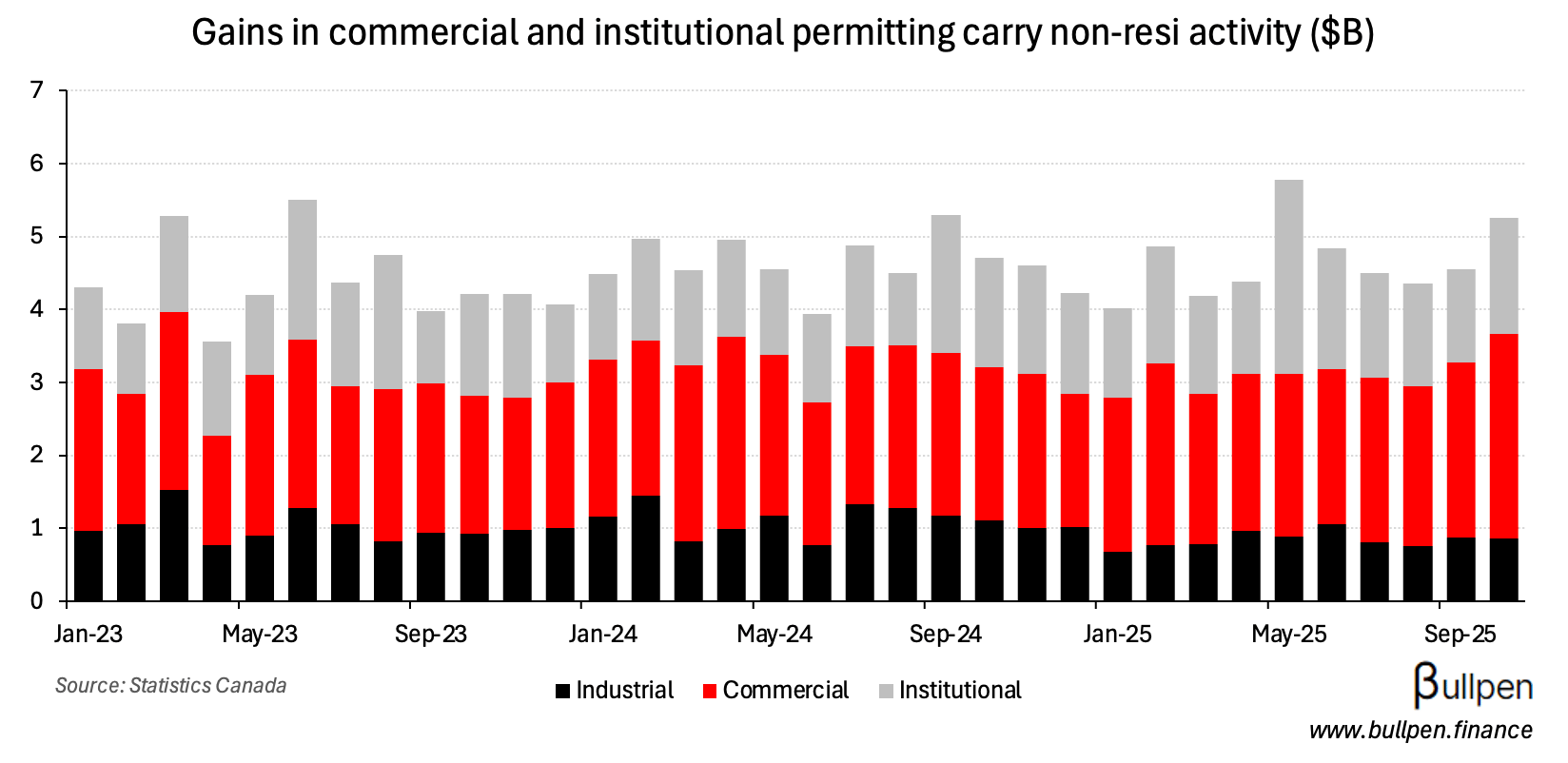 Non-residential permitting was strong too, with higher office permitting in Ontario and institutional activity in BC driving a $700M pickup versus September.