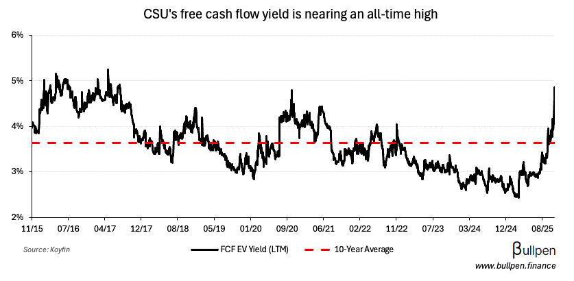 While investors seem to be chalking up CSU’s near-40% drawdown to AI risk…