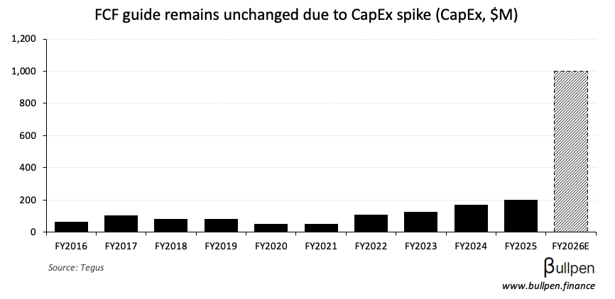 The company left its FCF guide unchanged though, driven by a $1B CapEx target of its own… cost of doing business in an AI boom.