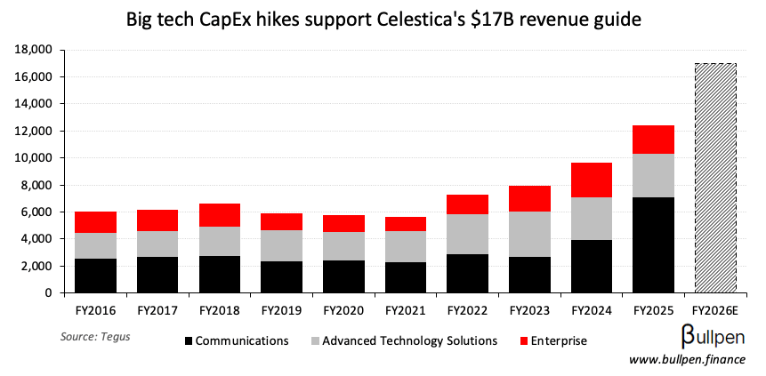 Celestica (CLS) was up over 6% on the back of elevated CapEx spending plans from the hyperscalers - with Meta, Google, and Amazon guiding way above estimates…