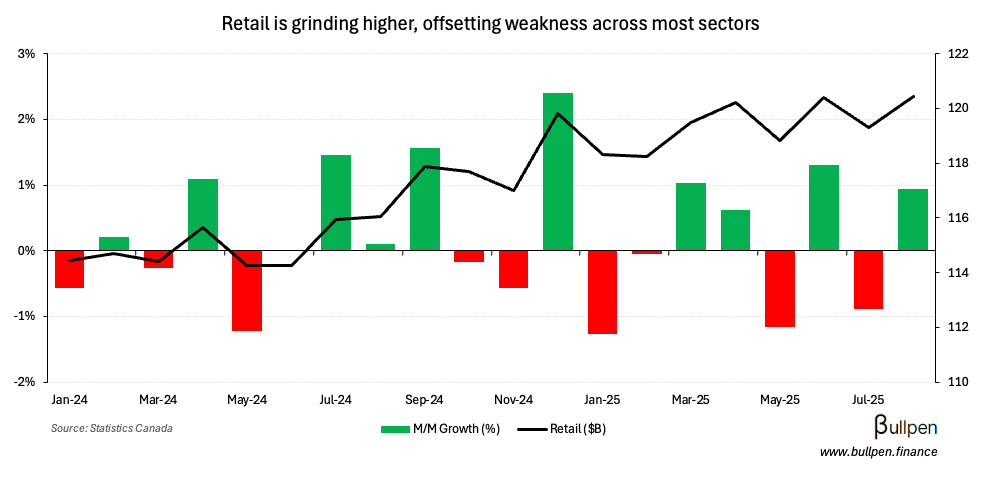 On the negative side, some items were transitory - like the Air Canada strike that weighed down transportation & warehousing activity.