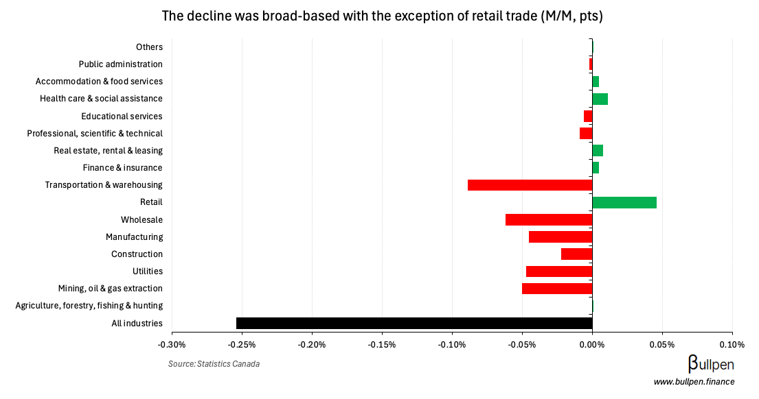 At the sector level, weakness was broad-based with the exception of retail trade…