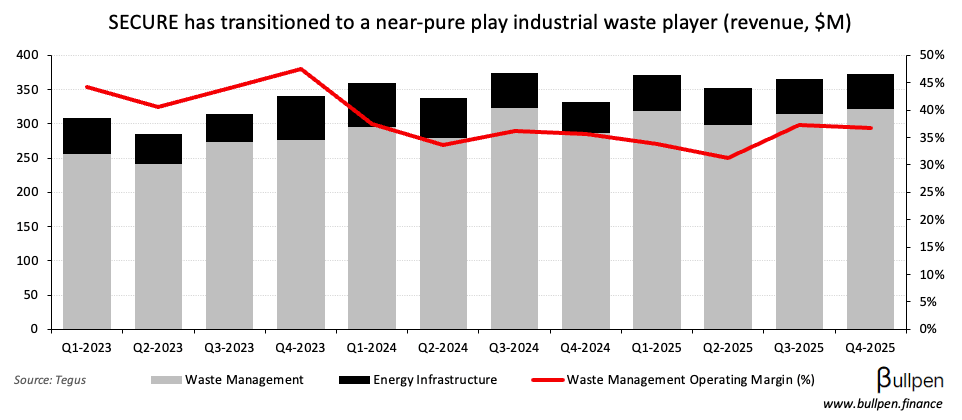 … but not materially so, with 80% recurring volumes and the western Canada footprint acting as a natural hedge to higher diesel prices - which eat into solid waste margins. Post-close, GFL should see higher FCF conversion…