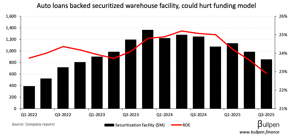 … and driving a breach of certain credit facility covenants, which poses a material risk to the lender’s funding model and returns. At a minimum, the securitized warehouse facility (low cost) should be impacted…