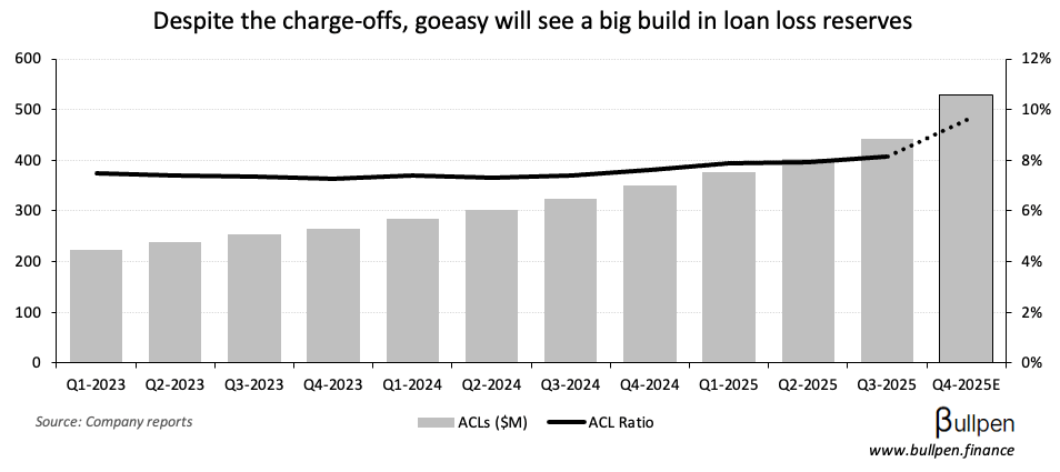 goeasy (GSY) dropped nearly 60% yesterday after throwing out the kitchen sink, guiding to a mid-teens charge-off rate in 2026 and ~13% for 2025 - which translates to $331M of write-offs in Q4…