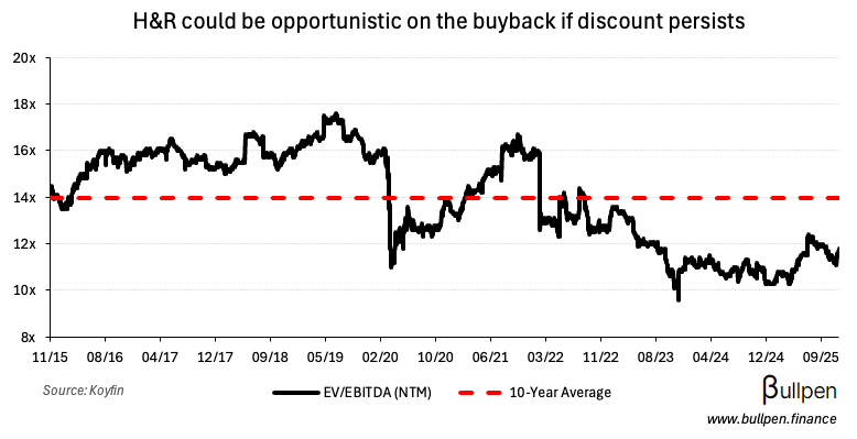 H&R plans to wipe out debt with the $1.1B in cash proceeds post-close, bringing leverage down to 8.7x - below its target ceiling of 9x…