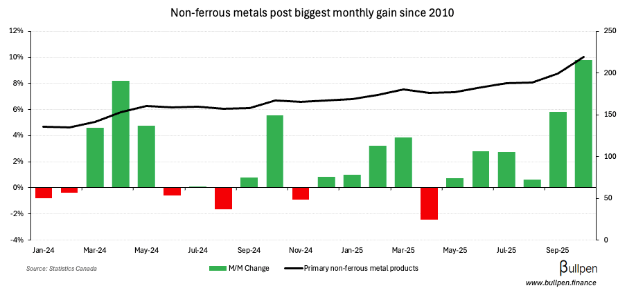 … driven mainly by precious metals and copper, which rose ~10% - the largest M/M increase since 2010 and the tenth in eleven months.