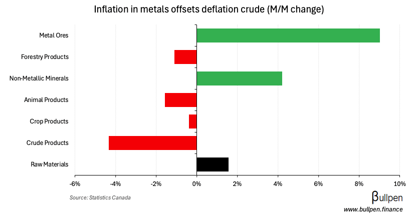 Similar dynamics played out in raw materials, with big gains in metal ores offsetting continued weakness in crude products…