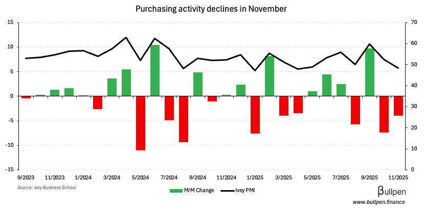 The Ivey PMI came in worse than expectations at 48.4, indicating purchasing activity declined relative to last month…
