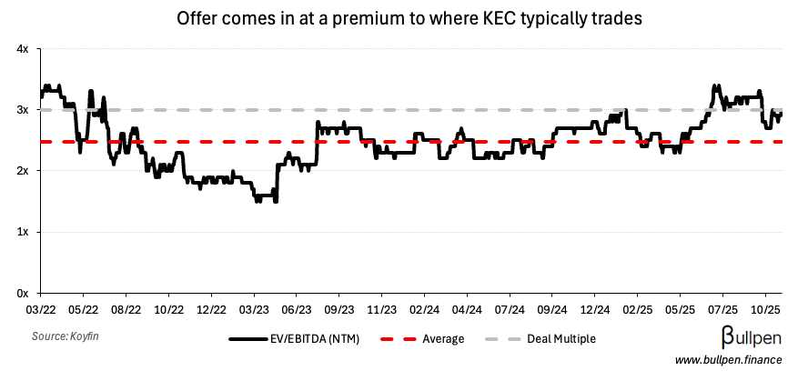 Kiwetinohk Energy (KEC) gained 10% after a $24.75/sh takeout bid from Cygnet, valuing the natural gas producer at $1.4B - or ~3x NTM EBITDA.