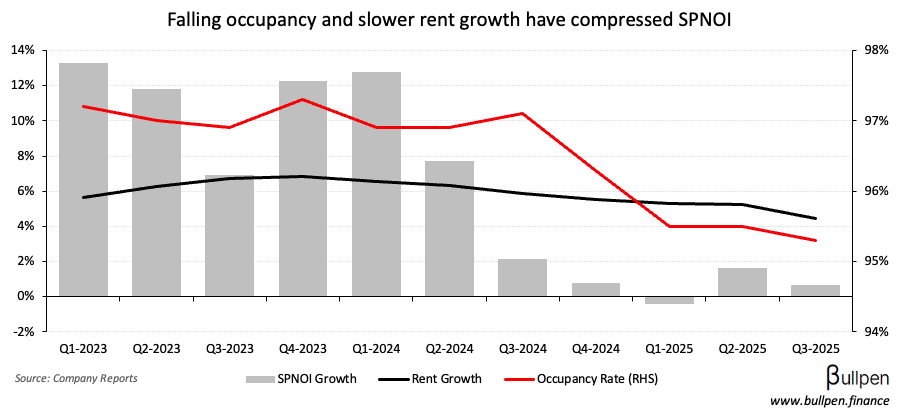 … and multi-unit absorption have pressured occupancy and rent growth, presenting an opportunity for private capital to play the long game. Let’s see if the Canadian names re-price and stop the bleeding from here.
