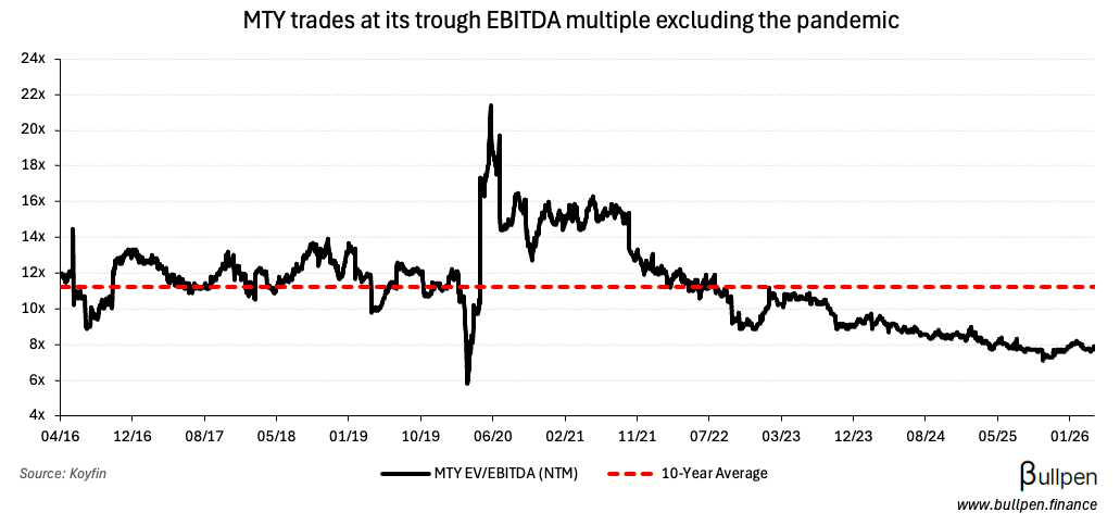 … driven by continued weakness in the US. That’s weighed on MTY’s valuation…