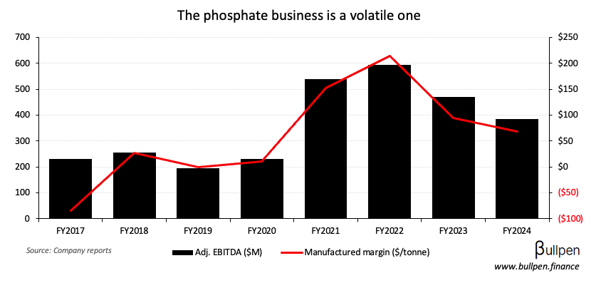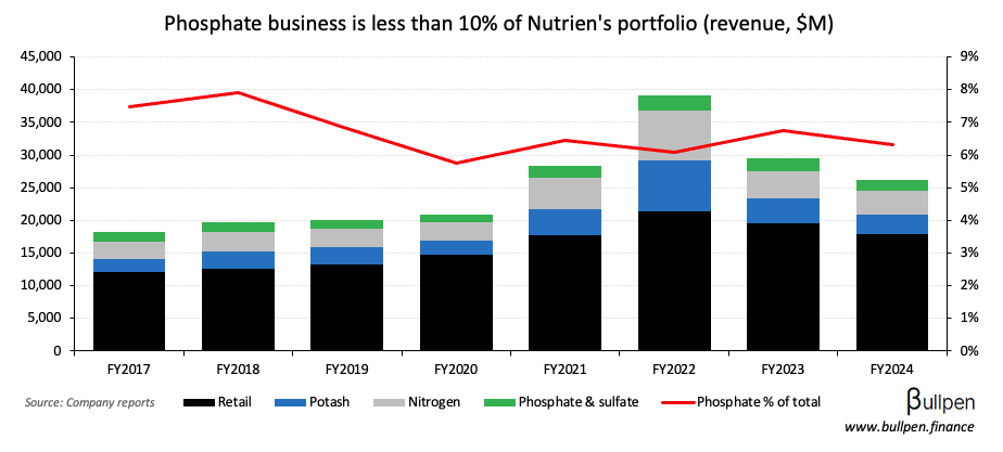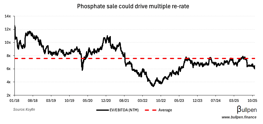 Nutrien (NTR) was up 3% on a Q3 beat but the results weren’t the story, with management running a process on its phosphate business - given the segment is only ~6% of NTR’s top line…