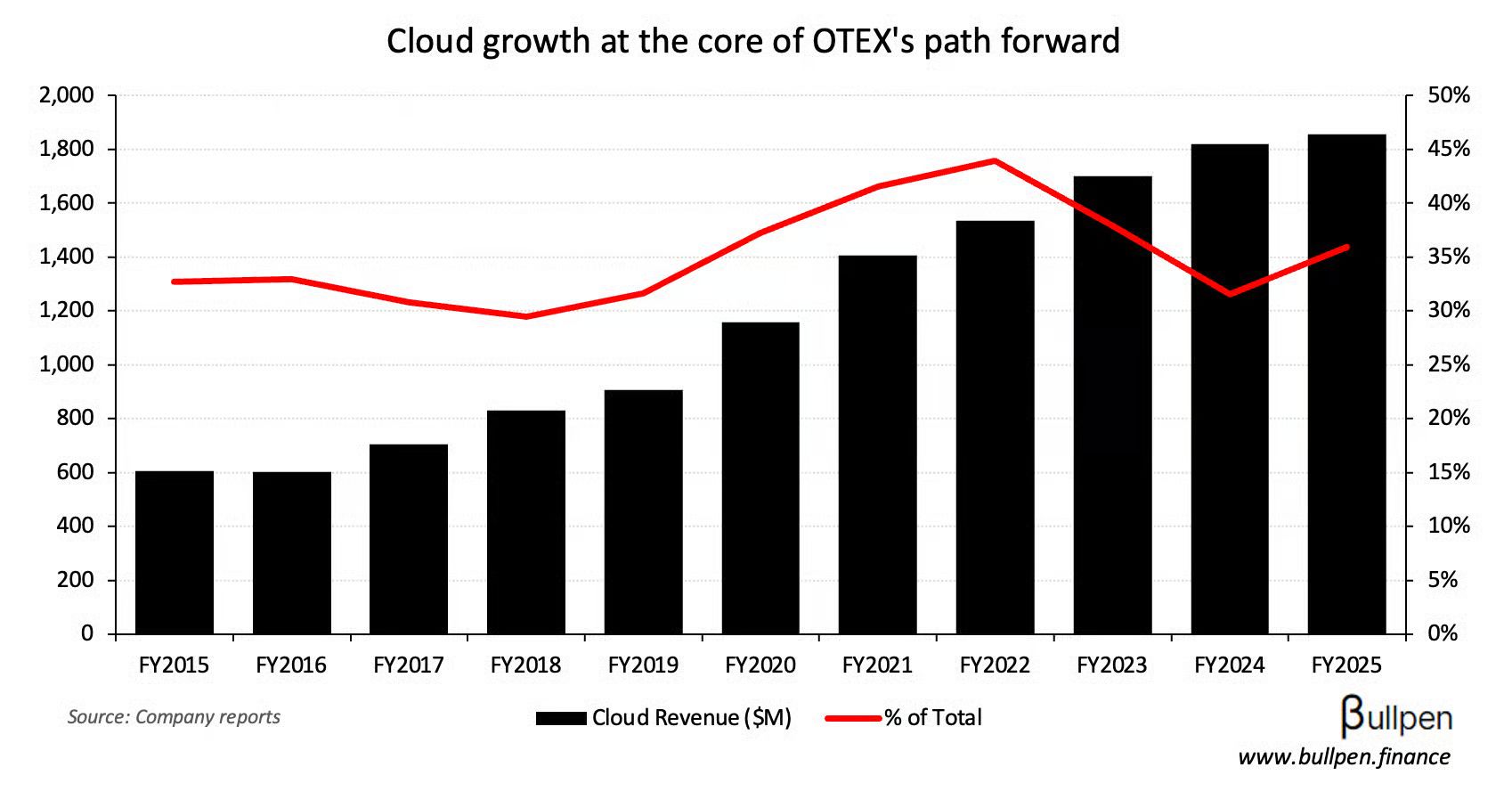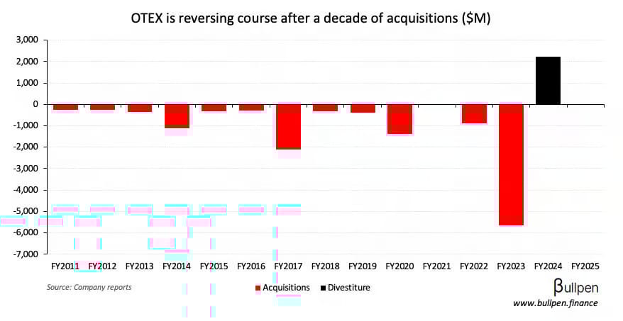 Open Text (OTEX) announced another non-core divestiture, selling eDOCS to NetDocuments for $163M. The deal sheds $30M in revenue (sub-1%) and tightens the focus on its cloud business…