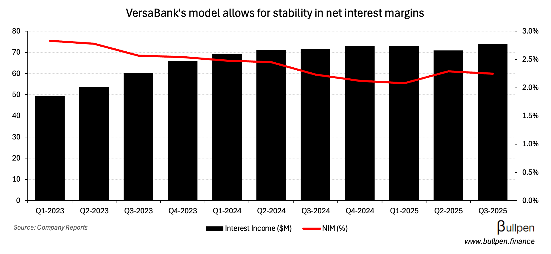 VersaBank (VBNK) isn’t your typical lender, operating without a branch network or origination business. Instead, it leverages deposit brokers and partners with POS lenders - reliably capturing a ~250 bps spread…