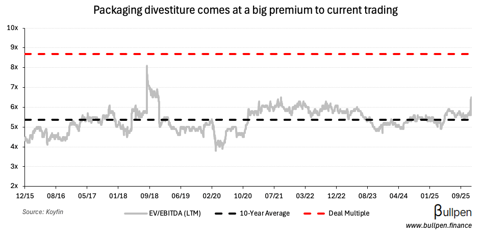 Transcontinental (TCL-A) jumped 20% on the back of its announced $2.2B packaging unit divestiture, a price tag that translates to ~9x LTM EBITDA - well above where the stock has traded historically…