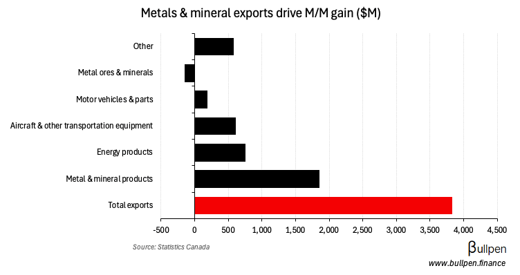 … largely due to metals and minerals (gold, silver, platinum, etc.), which carried exports to a 6% M/M gain…