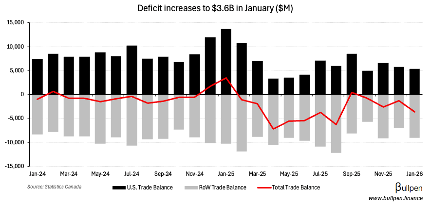 January’s $3.6B trade deficit was bigger than expected, growing over last month’s print…
