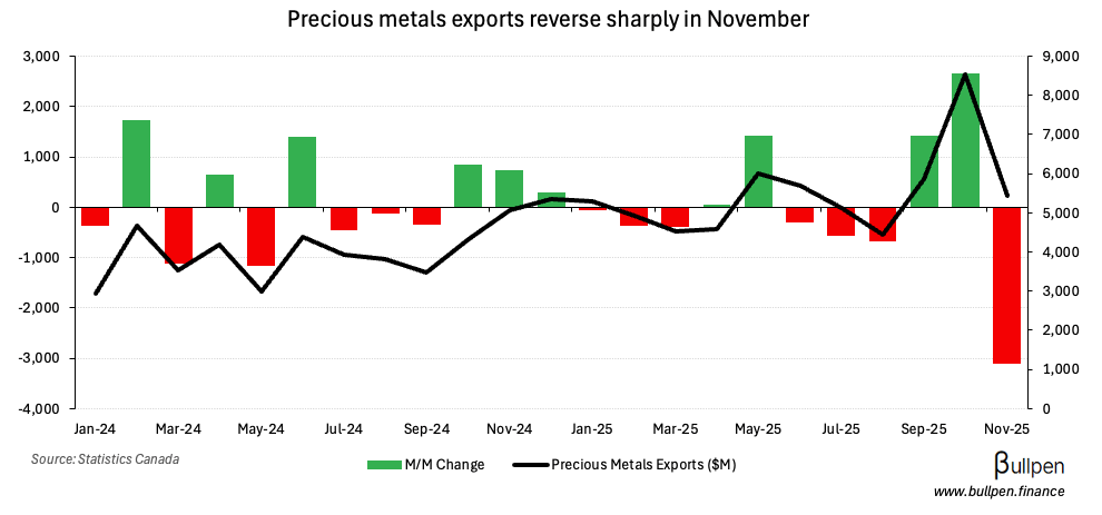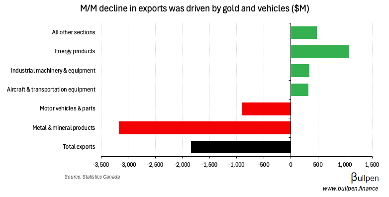 … on the back of a ~3% decline in exports, led by a three-year low in vehicles (down 12%) and a 24% drop in precious metals…