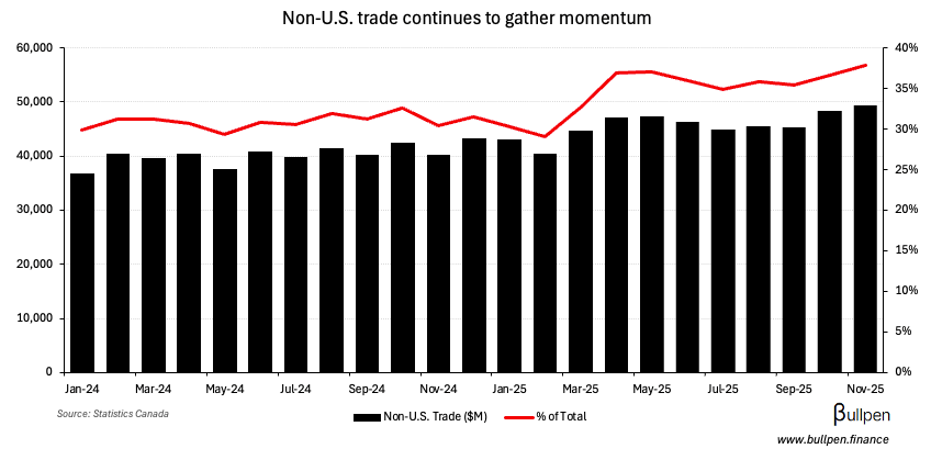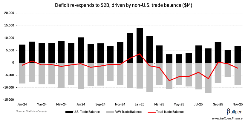 November’s $2.2B trade deficit missed expectations by $1.5B, expanding over last month’s print…