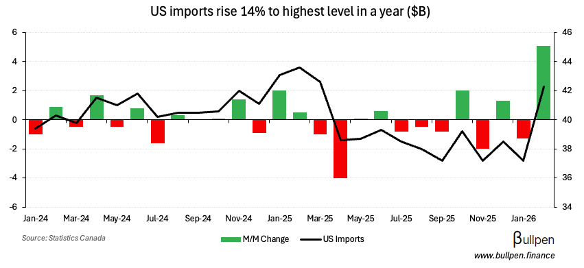 … on the back of a 14% rise in imports from the US, which squeezed our surplus south of the border to the lowest level since 2020.