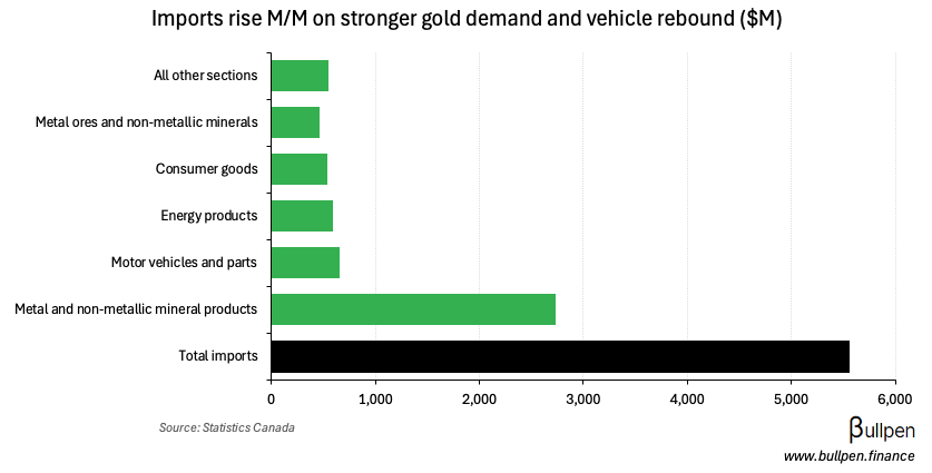 The increase was largely driven by a rebound in motor vehicle activity, which pushed imports up 8% alongside higher gold demand…