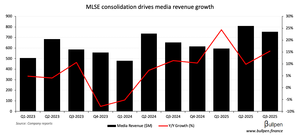 Rogers (RCI-B) hit fresh YTD highs with its Q3 results, gaining 3% on a top and bottom line beat - partially driven by its recent acquisition of Bell’s MLSE stake.